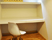 El estudio, situado anteriormente en el centro de la casa, se sitúa ahora junto a la entrada. Un gran panel corredero lo abre al recibidor, ampliando la superficie del mismo y permitiendo independizar el resto de la casa de este espacio cuando haga falta recibir visitas profesionales. Así, simplemente moviendo el panel se puede dividir la casa en dos espacios claramente diferenciados, la zona privada y la zona pública.